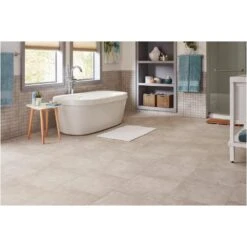 TrafficMASTER Marbella Tile Neutral Residential Vinyl Sheet, Sold By 13.2 Ft. Wide X Custom Length